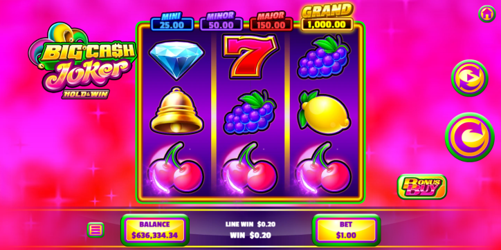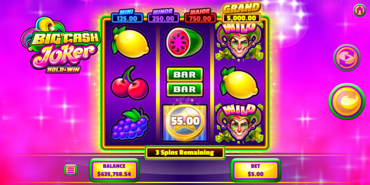 Meet the Big Cash Joker, your mischievous Wild guide to glittering Gold Prize Coins and magical Pearl Collector Coins! Trigger the Hold & Win Bonus for re-spins that stack your winnings in real time, chase four sparkling In-Game Jackpots, and let the Joker help line up winning combos for nonstop big cash fun.